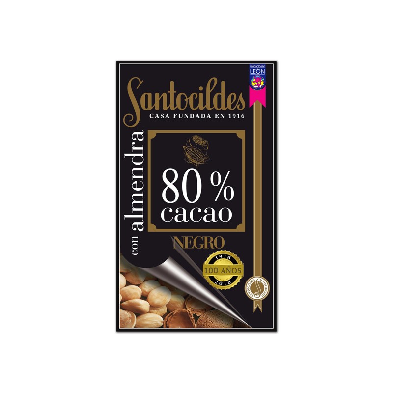 Chocolate 80% cacao con almendra, de 200g. Sabor del cacao puro con la almendras (enteras y nacionales).